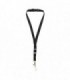 lanyard con cierre de seguridad antienganches, cuando se produce un tirón fuerte, la cinta se abre automáticamente quedando liberada del cuello.